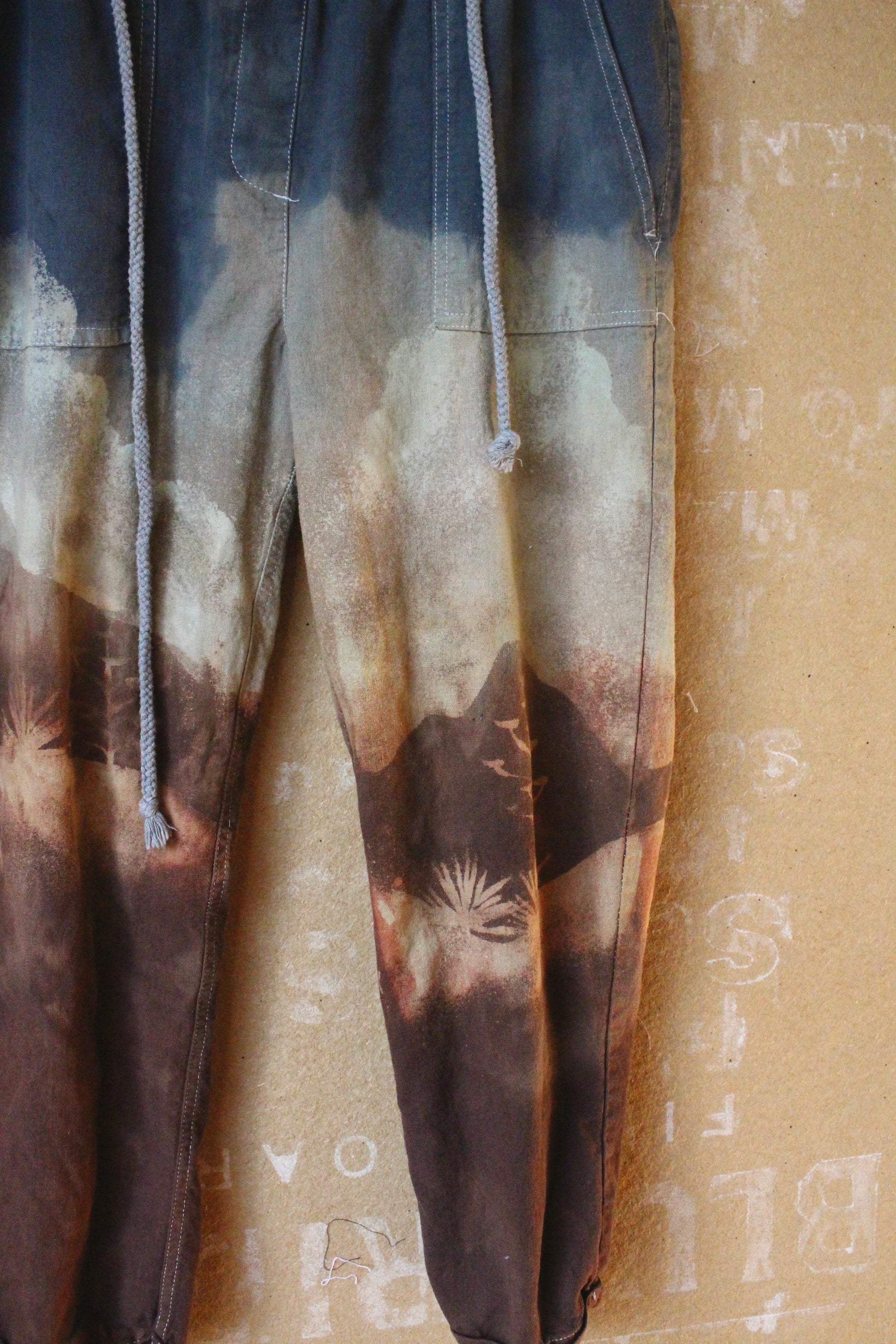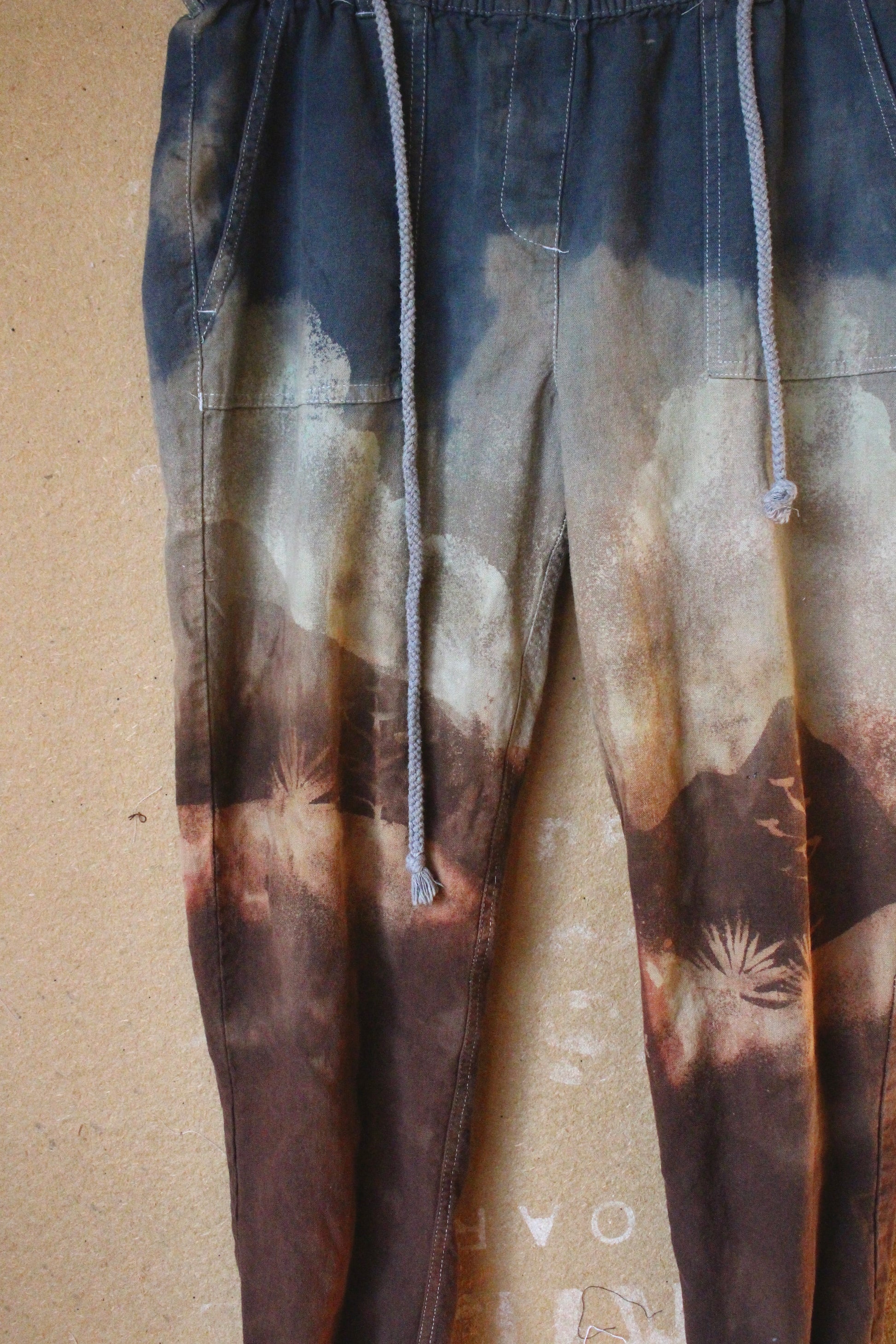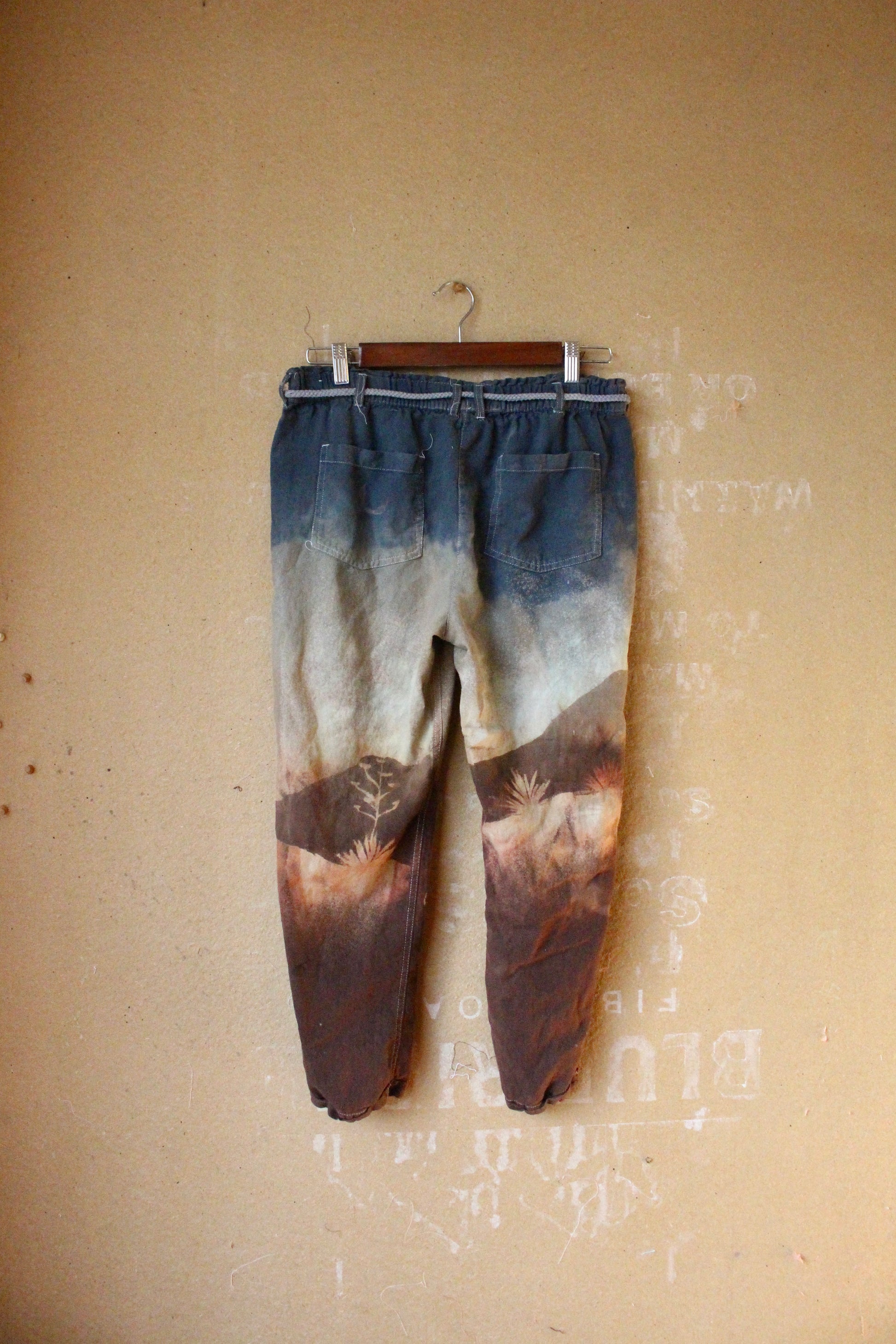 Small High Desert Landscape Pants - 100% Cotton - Upcycled - Rope tie waist