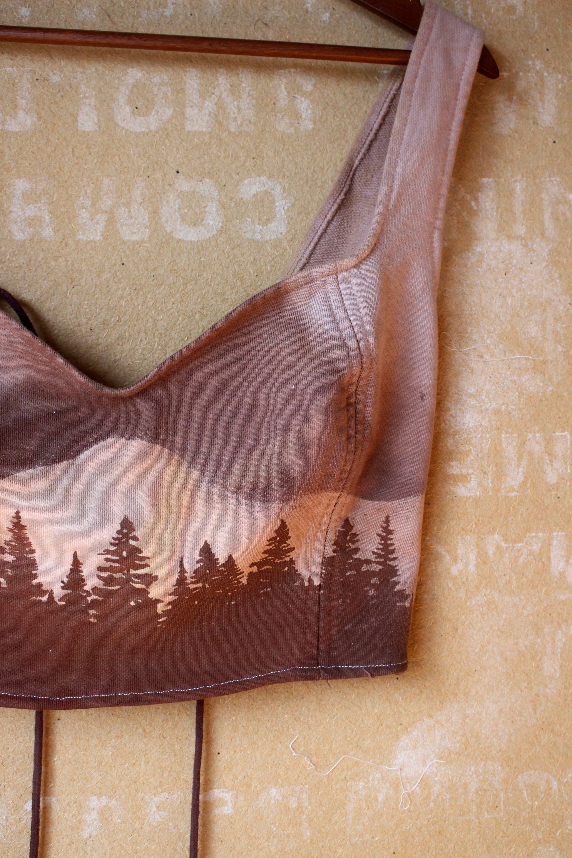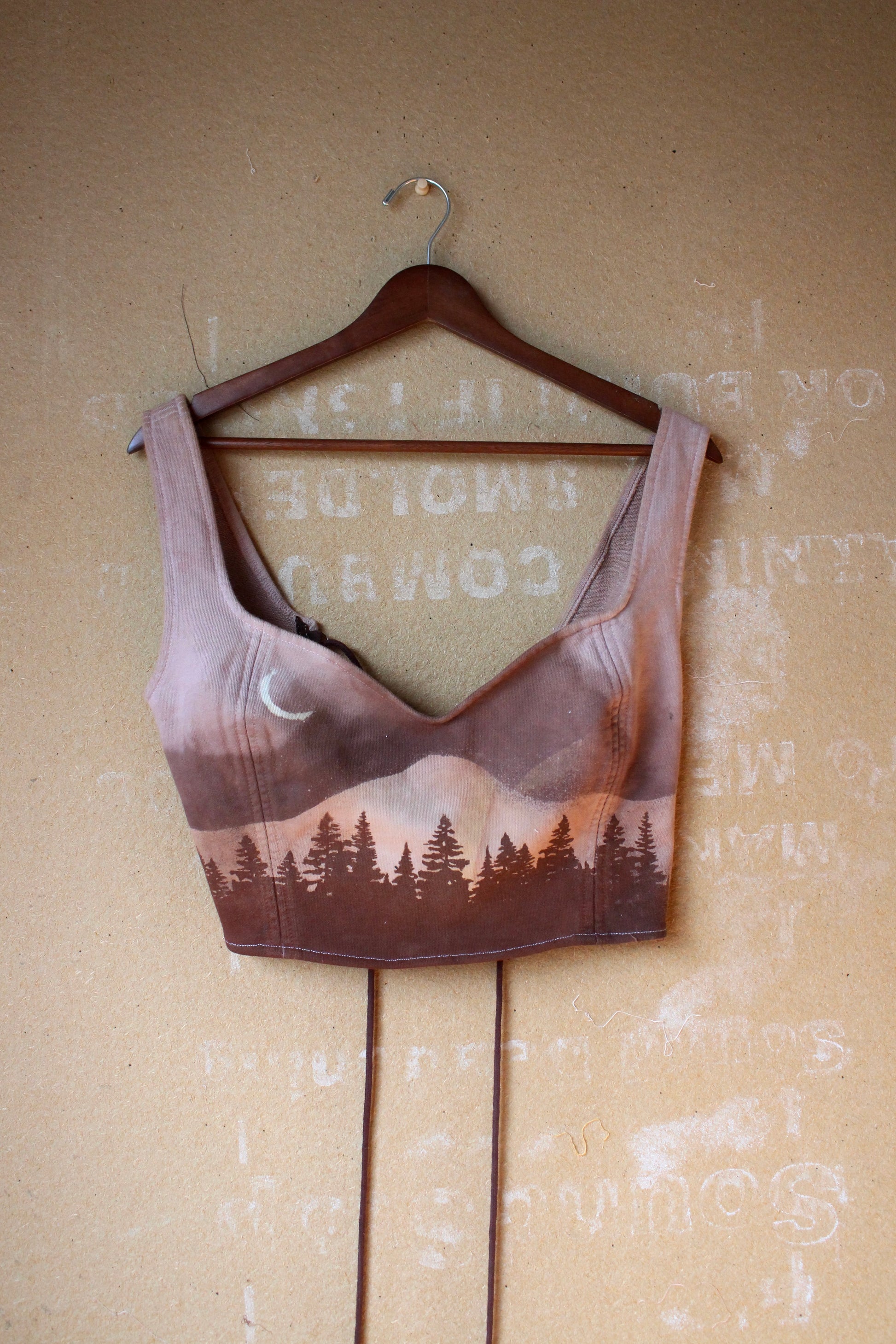 Large - Mauve Forest moon Landscape Corset Bustier Top- Screen printed - and stenciled - Made from 100% Cotton french terry thick sturdy heacy weight