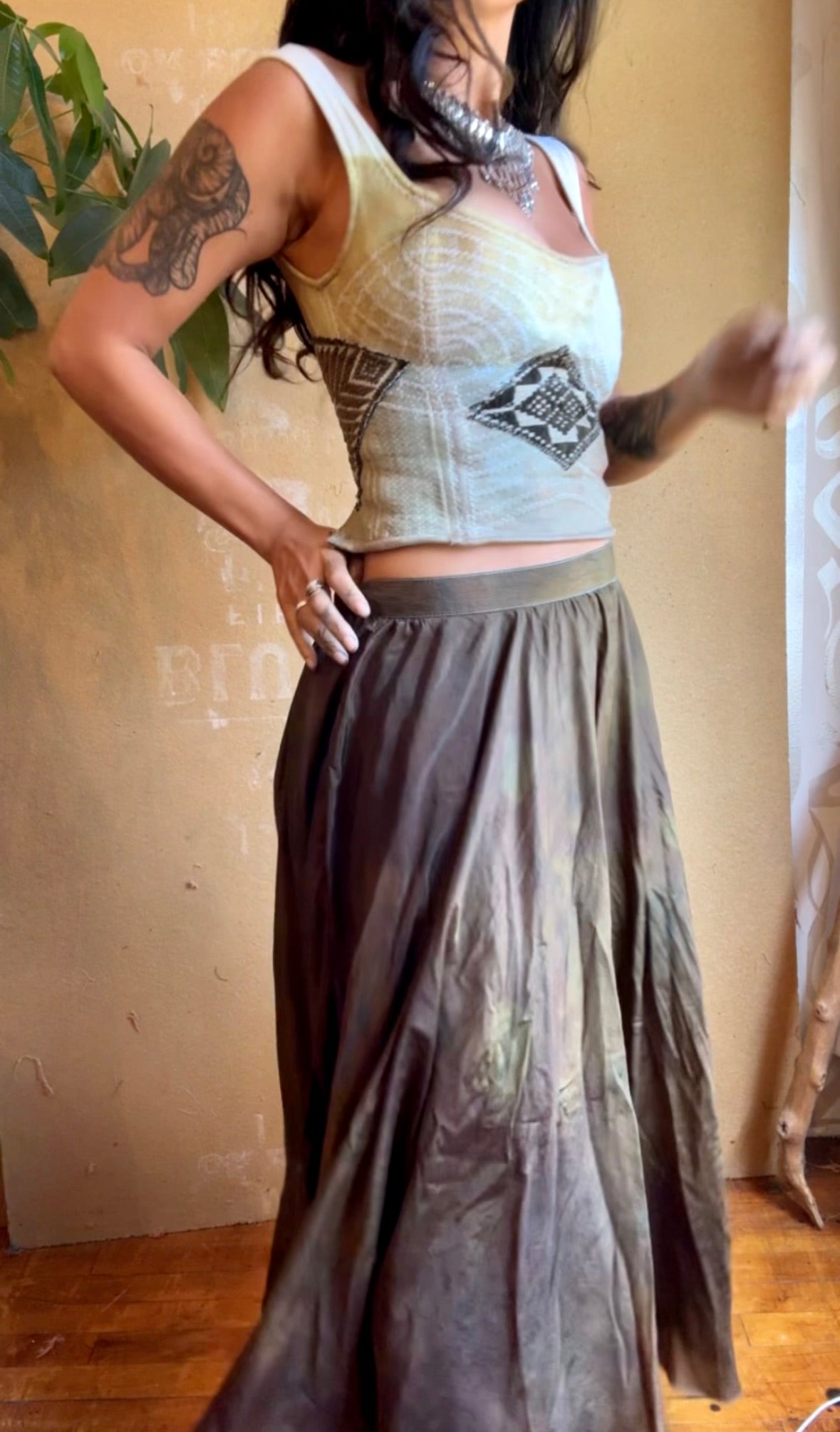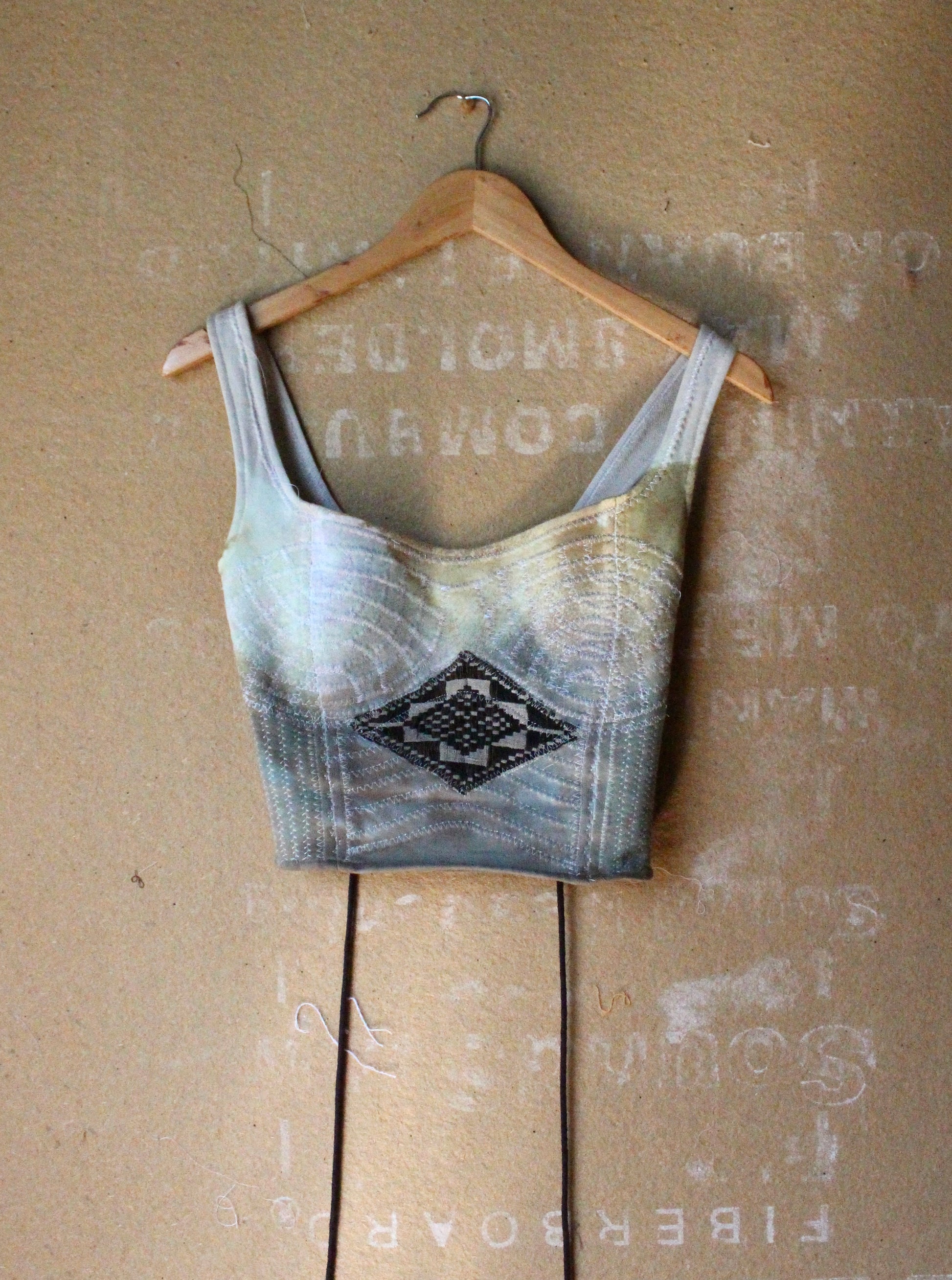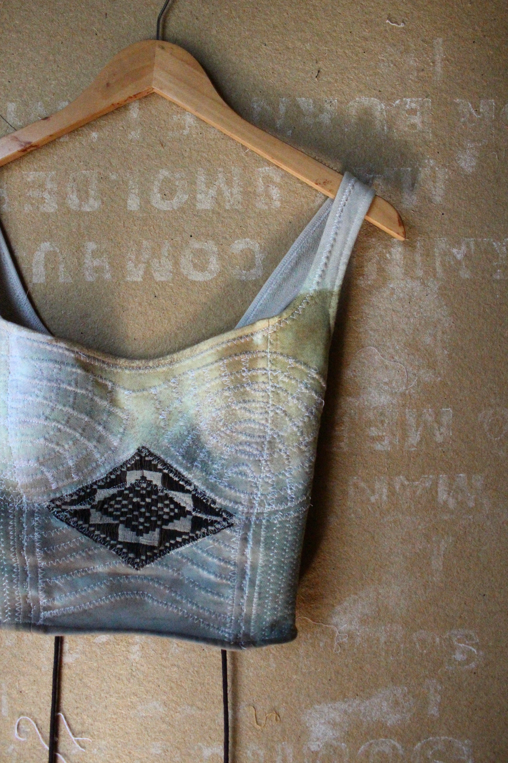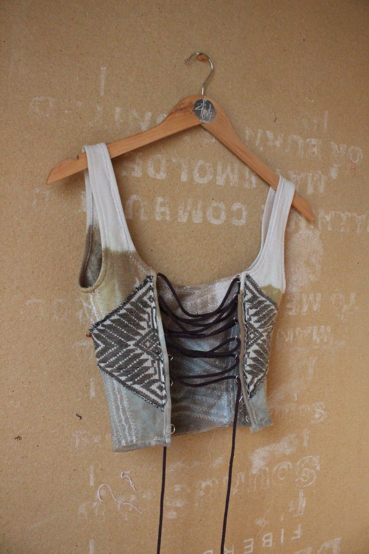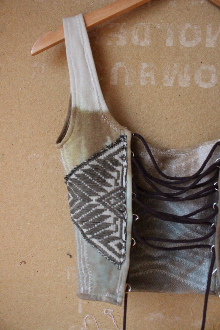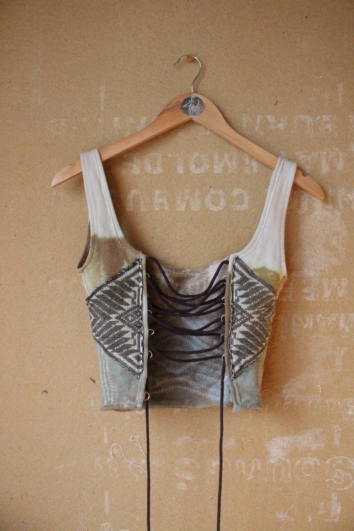 Small or Medium - Continuum full length Corset top - Vintage 70's hmong hill tribe vietnamese woven tapestry patches - adjustable