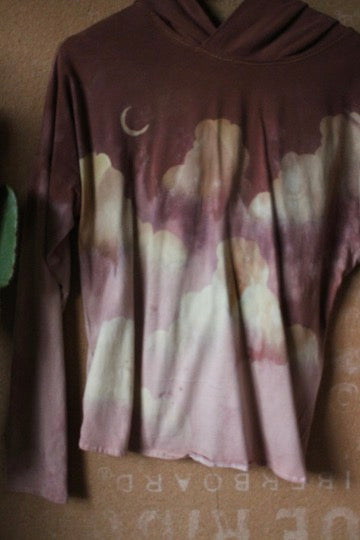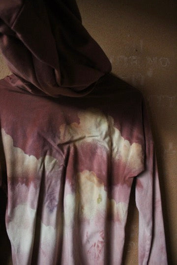 Small - Muave CLoudy Skies - Grest for traveling- Slouchy Long sleeve Hoodie - Oversized Hoodie - 100% oRganic cotton
