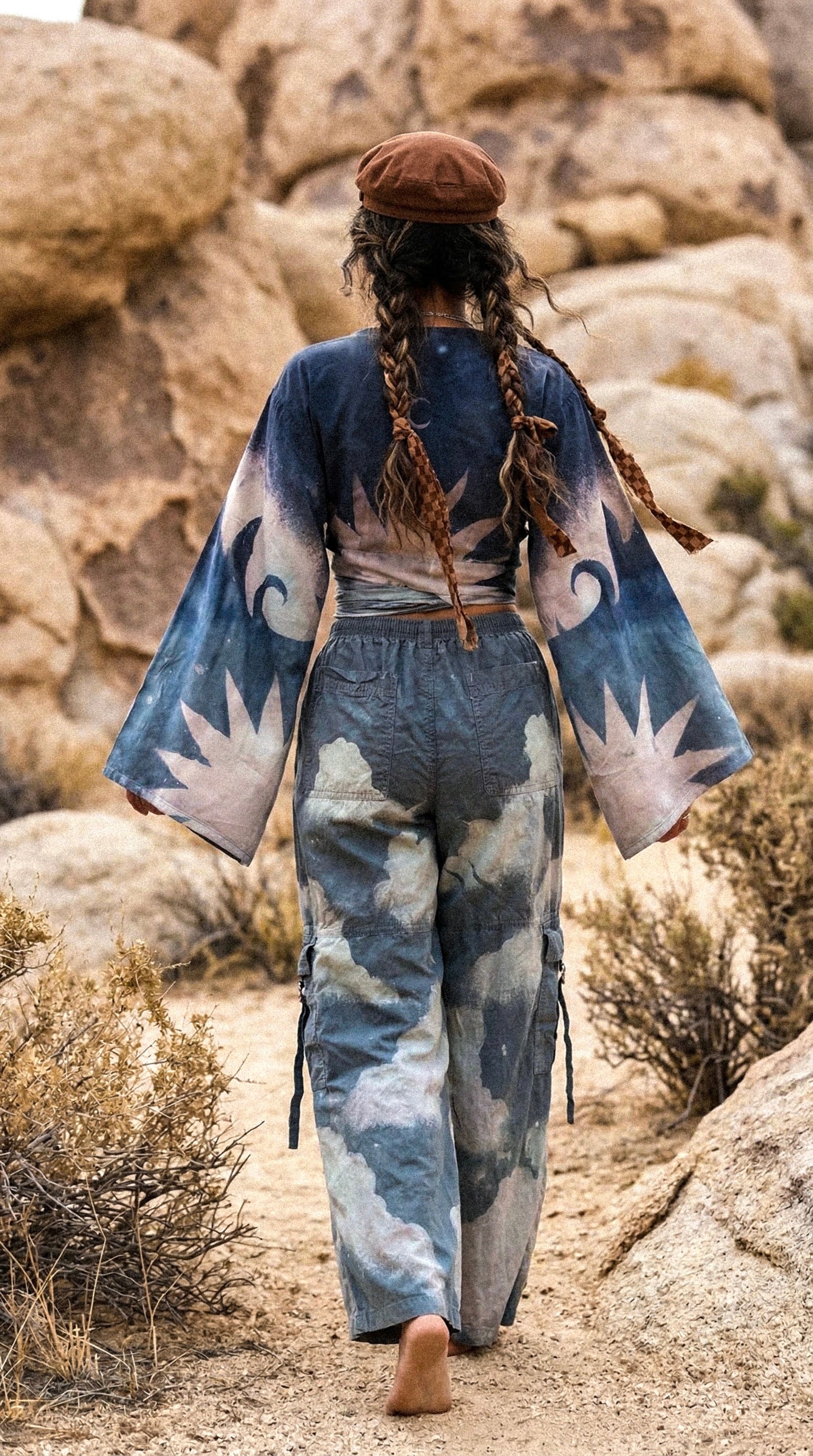 Small - Size 4- Blue Skies Cargo Pants - 100% Cotton - Upcycled - Regenera-zhinh - Stretch Waist
