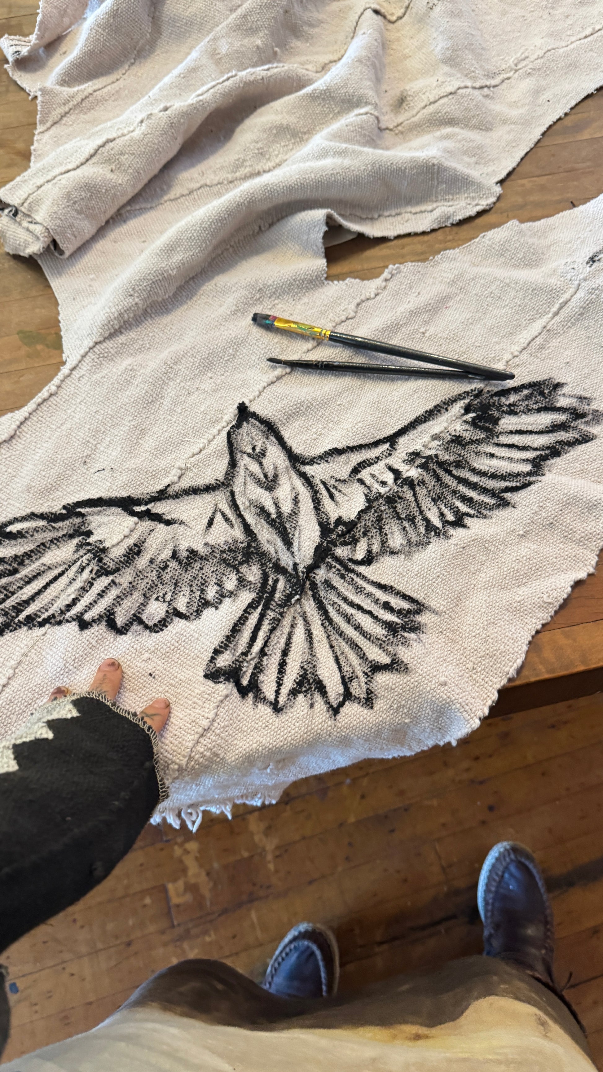 Regular (Fits S/M/L) Tall Maxi Dress (can Hem If requested) Silver Cloudy Sky Henka Dress - Hawk Spirit signs -Tie Back Hand painted Hawk patch -