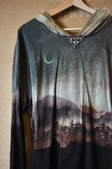 Medium - Rainy Monday Rising In the Mountains - Slouchy Long SLeeve Oversized Hood - Super Smooth soft 100% Organic Cotton- Slight Stretch - Fear of Gods Deadstock fabric