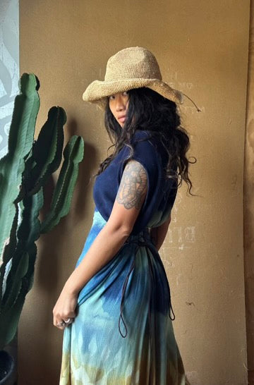 Petite (Fits XS/S/M) Tall Maxi Dress (can Hem If requested) And rise neckline too if needed - Grand Risings -Tie Back - Transformable Maxi - 100% Fluid flowy novelty cotton - Limited version special fabric