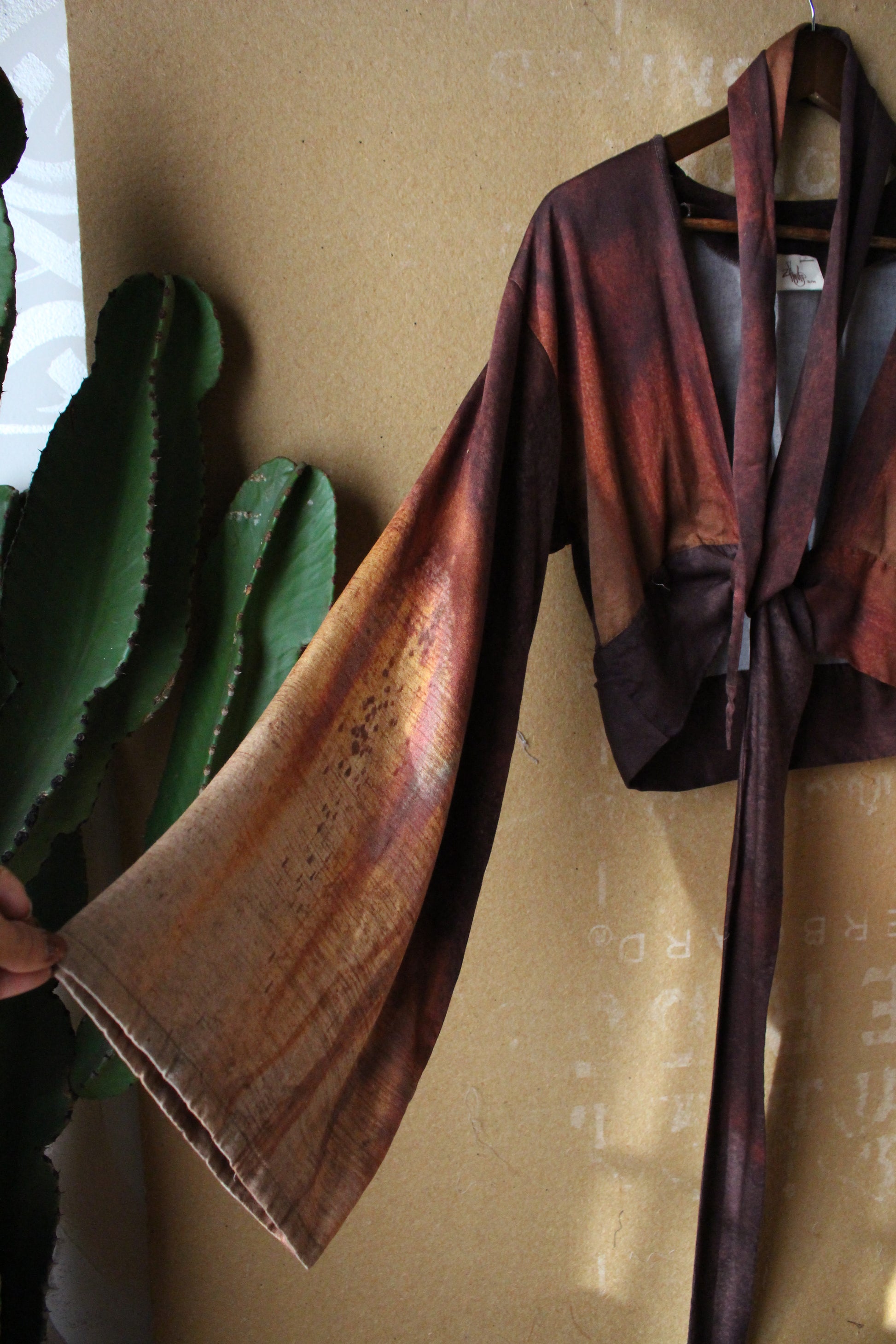 This is a pre order of the new kimono wrap top, digitally printed on milky silky lotus waste fabric, a print of a photo I took of a oxidizing rusty sign in Thailand.