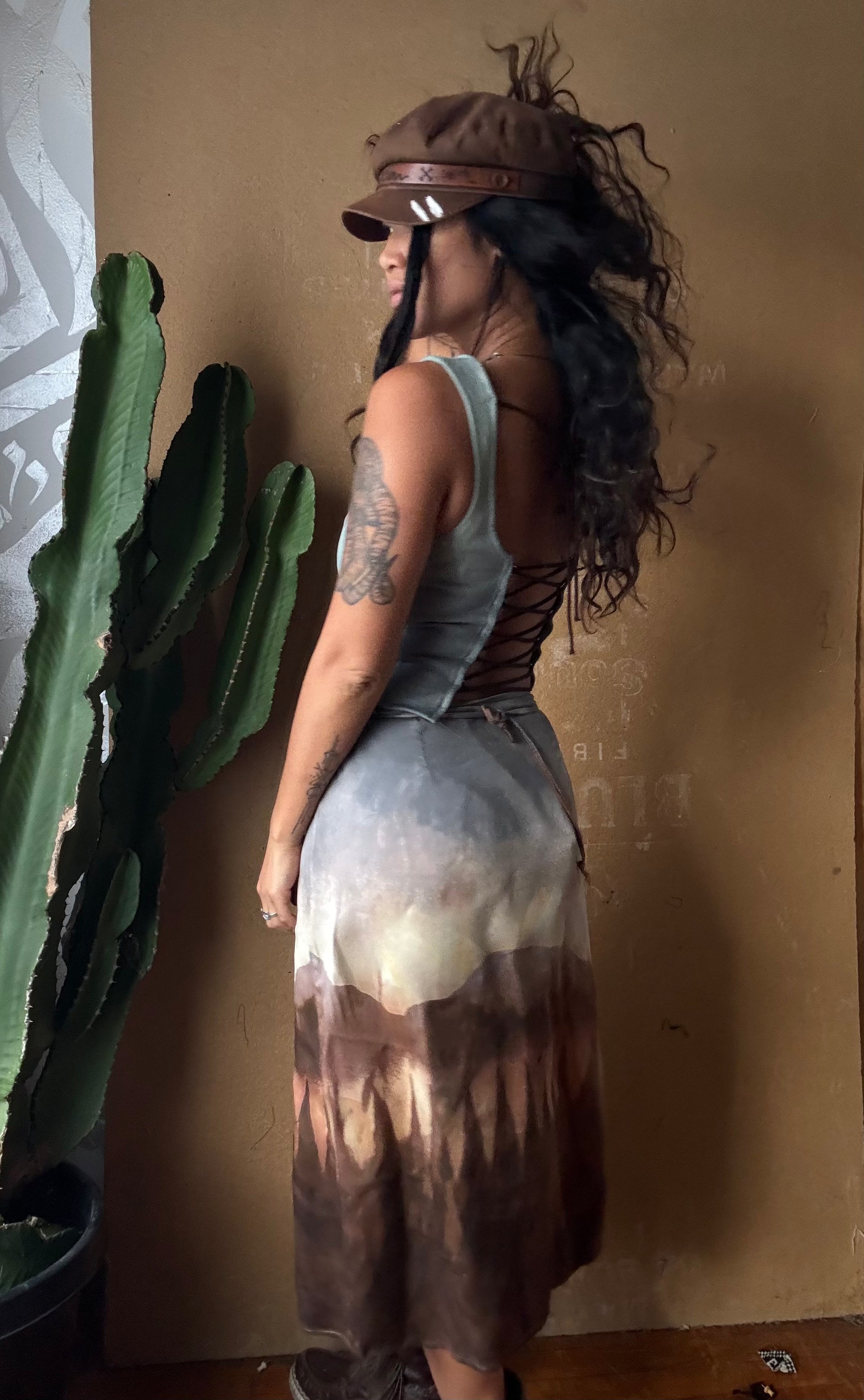 S - Celebration Of Life - Light Blue Corset Top - Full Length - 100% Heavy Weight Cotton French Terry - Deadstock Fabric