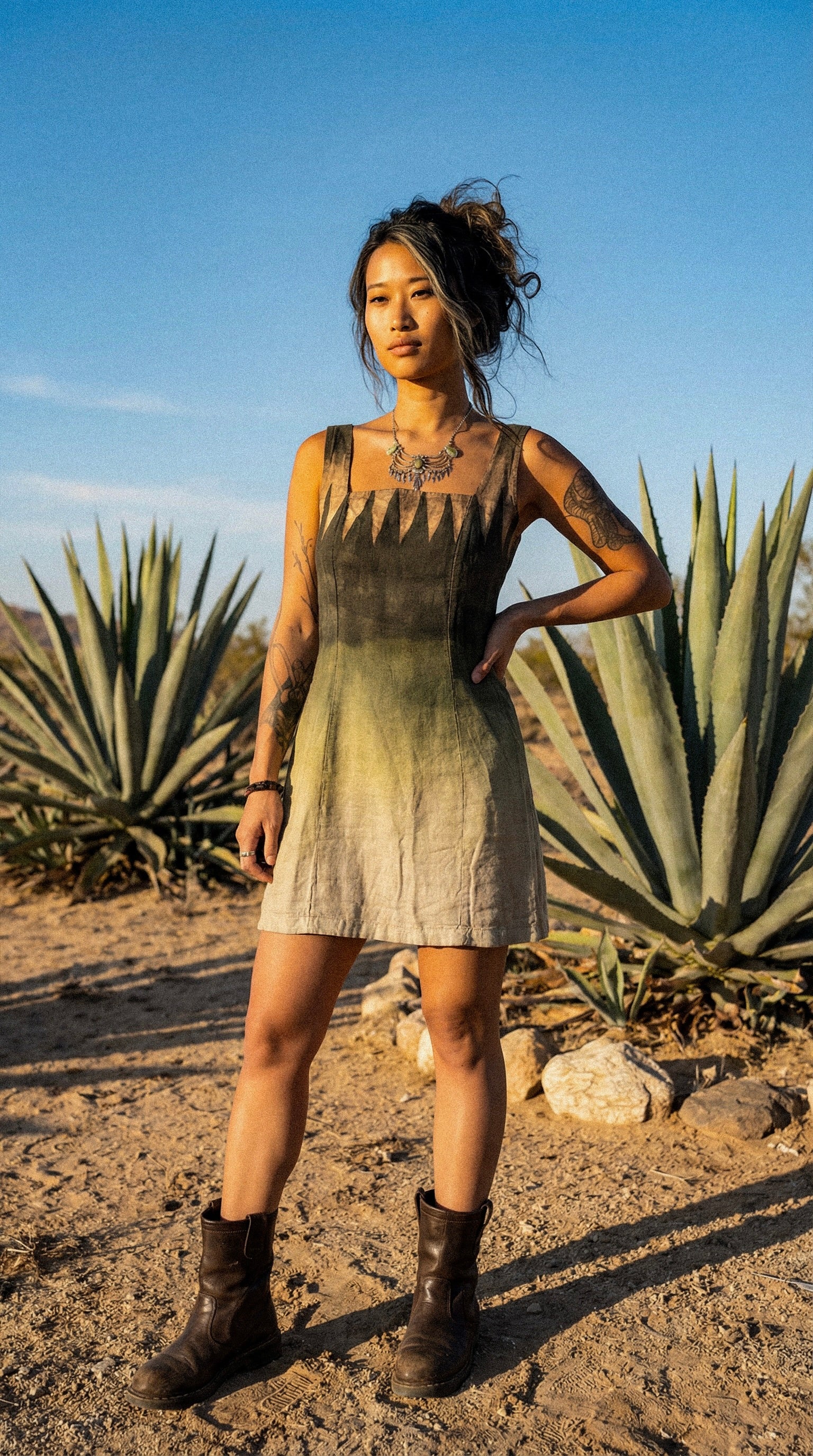 Small/Medium - Agave Tendrals Mini Dress - OOAK- Upcycled- 55% Linen 45% Rayon- Regenera-zhinh