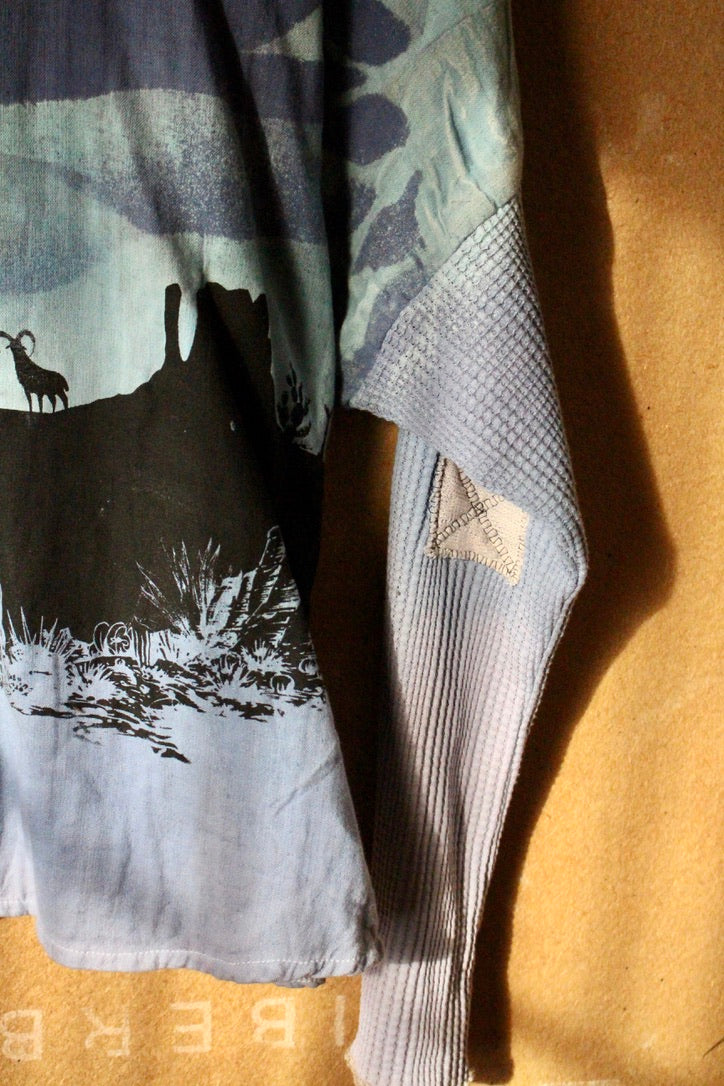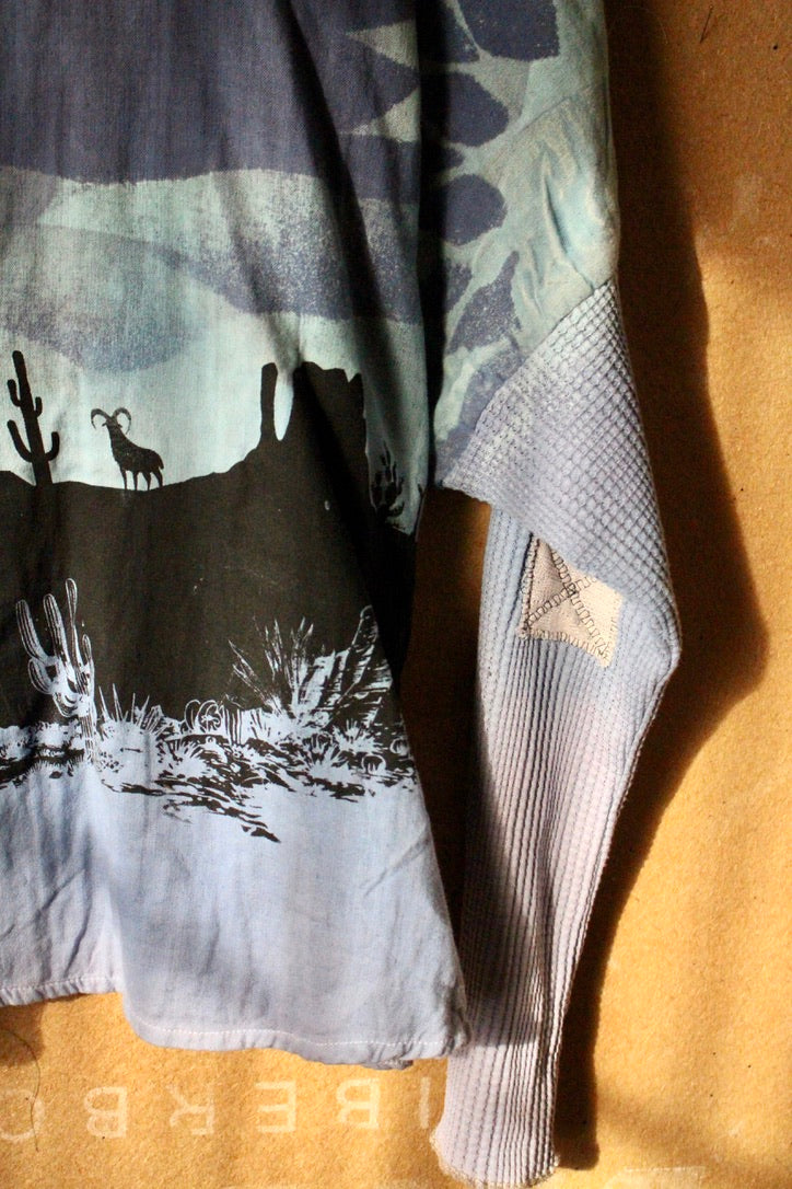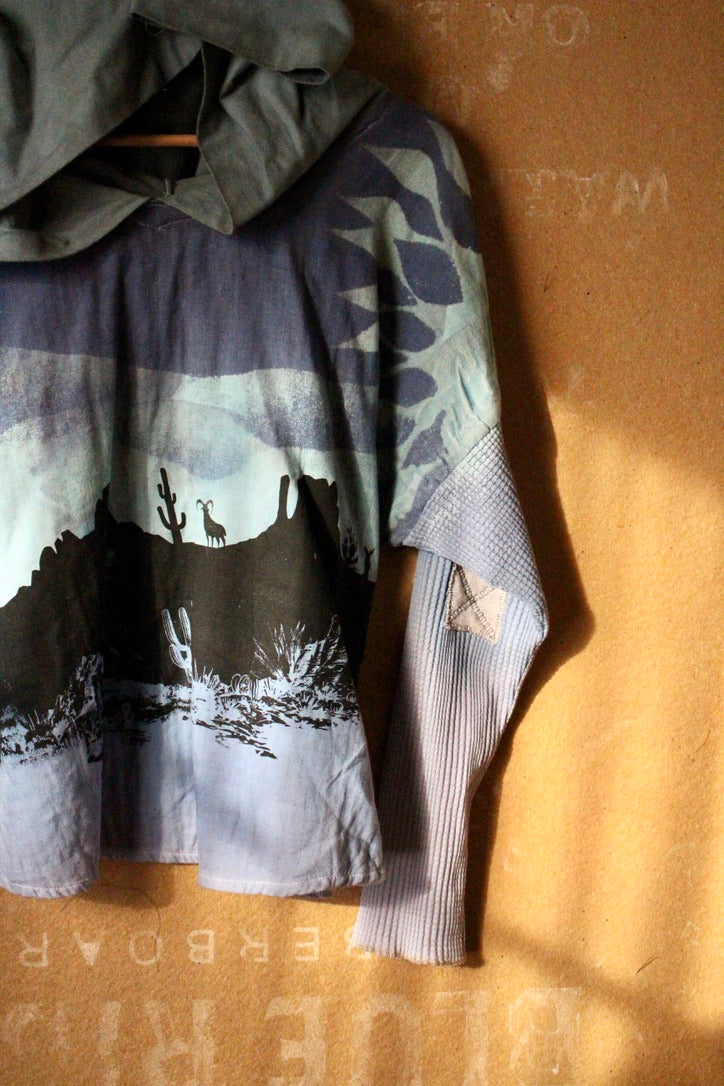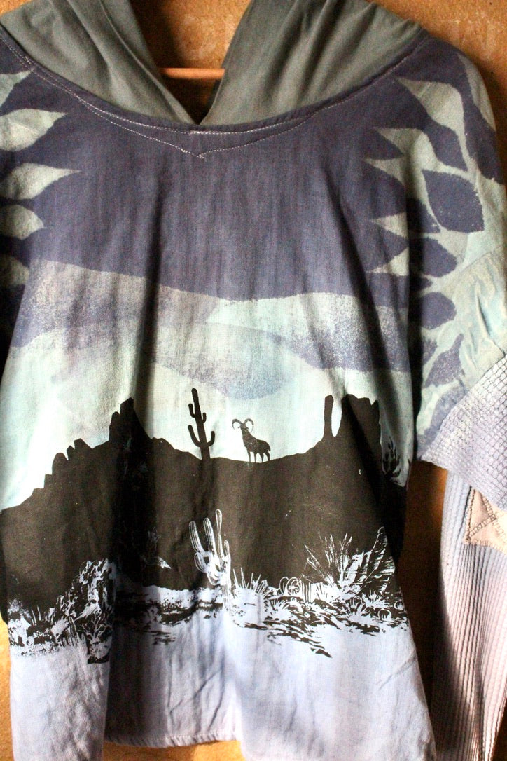 Small/Medium - Desert Blues -Slouchy Long sleeve Hoodie - Oversized Hoodie - 100% Triiple Layered heavy weight oRganic cotton Gauze - Warm - Cotton open weave sleeves and hood (Copy)
