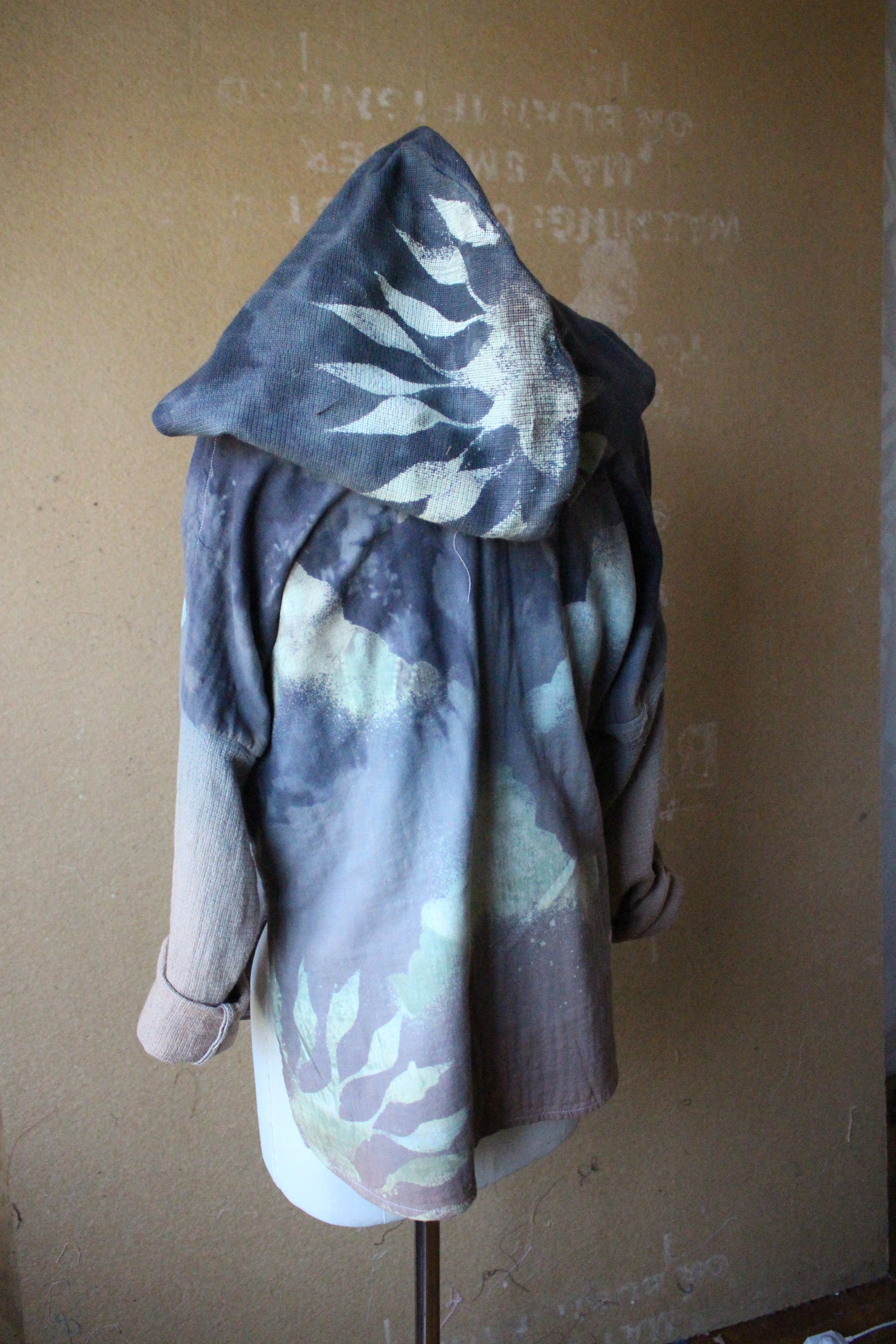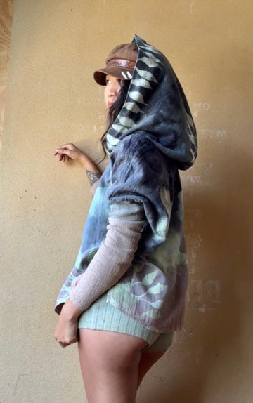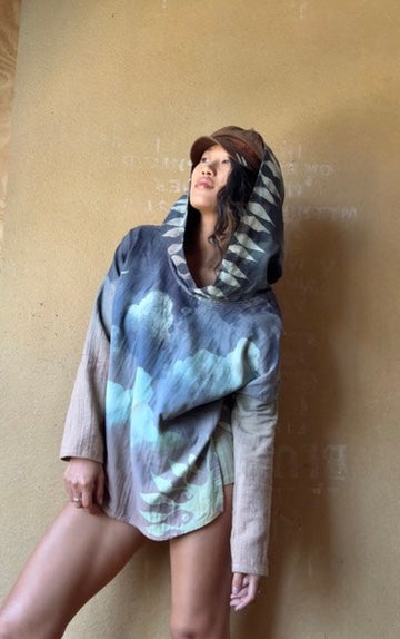 Small - Cloudy Daze Hoodie - Oversized SLouchy Longsleeve Sweatshirt- GIANT Hood- OOAK - Limited edition - 100%Cotton Triple layered heavyweight Gauze - 100%Cotton Open weave Cotton-