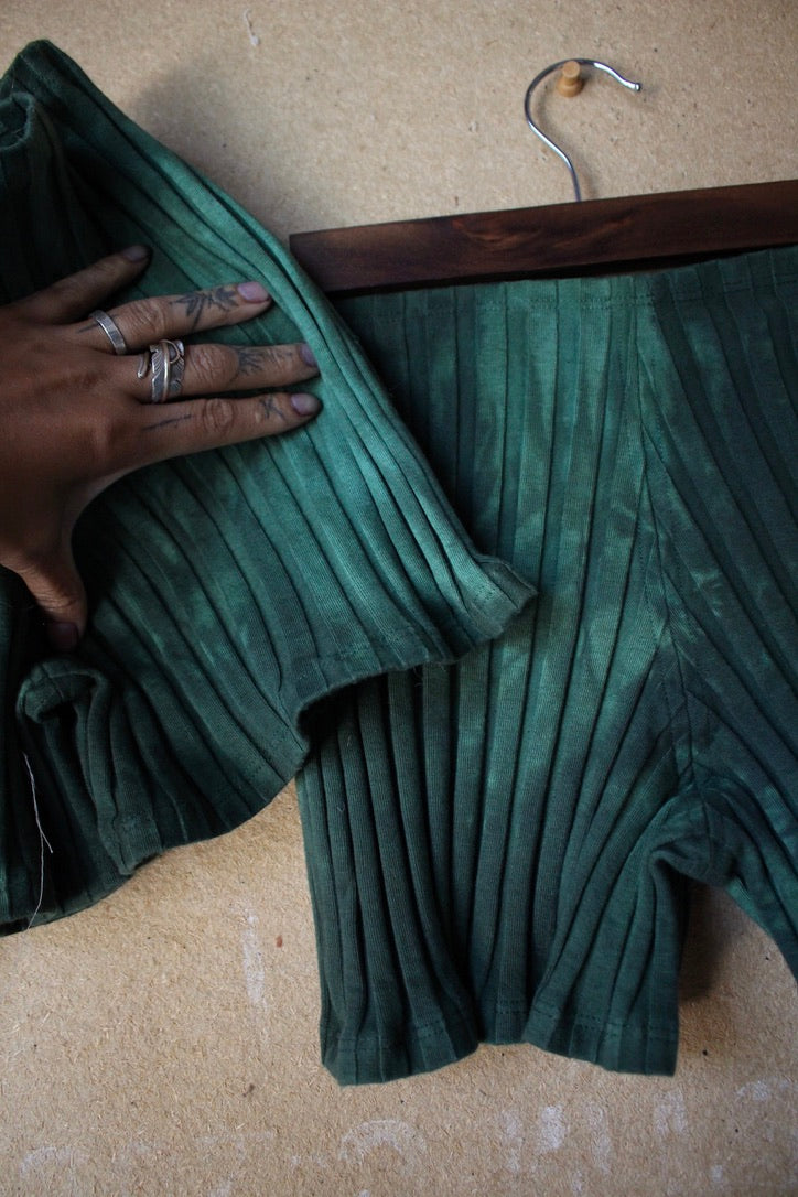 Restocked! Ready to Ship- Turquiose - Hand Dyed -Organic Cotton White Ribbed shorts -Zhinh Basics - Made from Ribbed Organic Cotton/ Spandex - undergarment/ loungewear/ activeDeadstock fabric